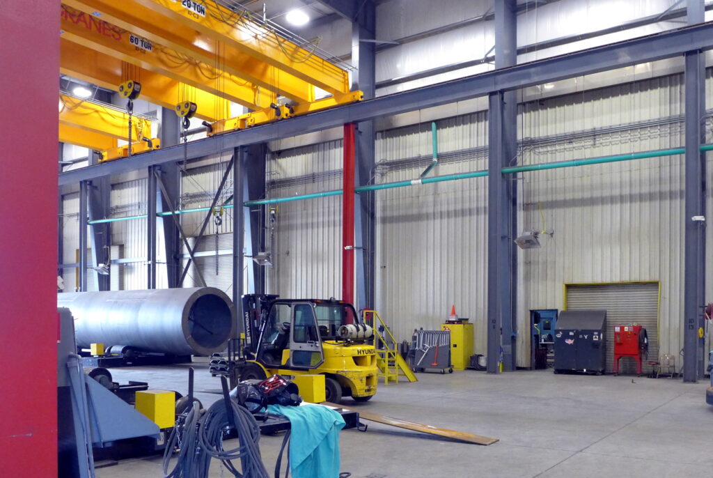 Added 28,000 sqft manufacturing bay to existing 290,000sf building. New bay was 48′ tall with four 60 ton bridge cranes. Building included numerous pits and presses. All was constructed while Astec continued their operation.